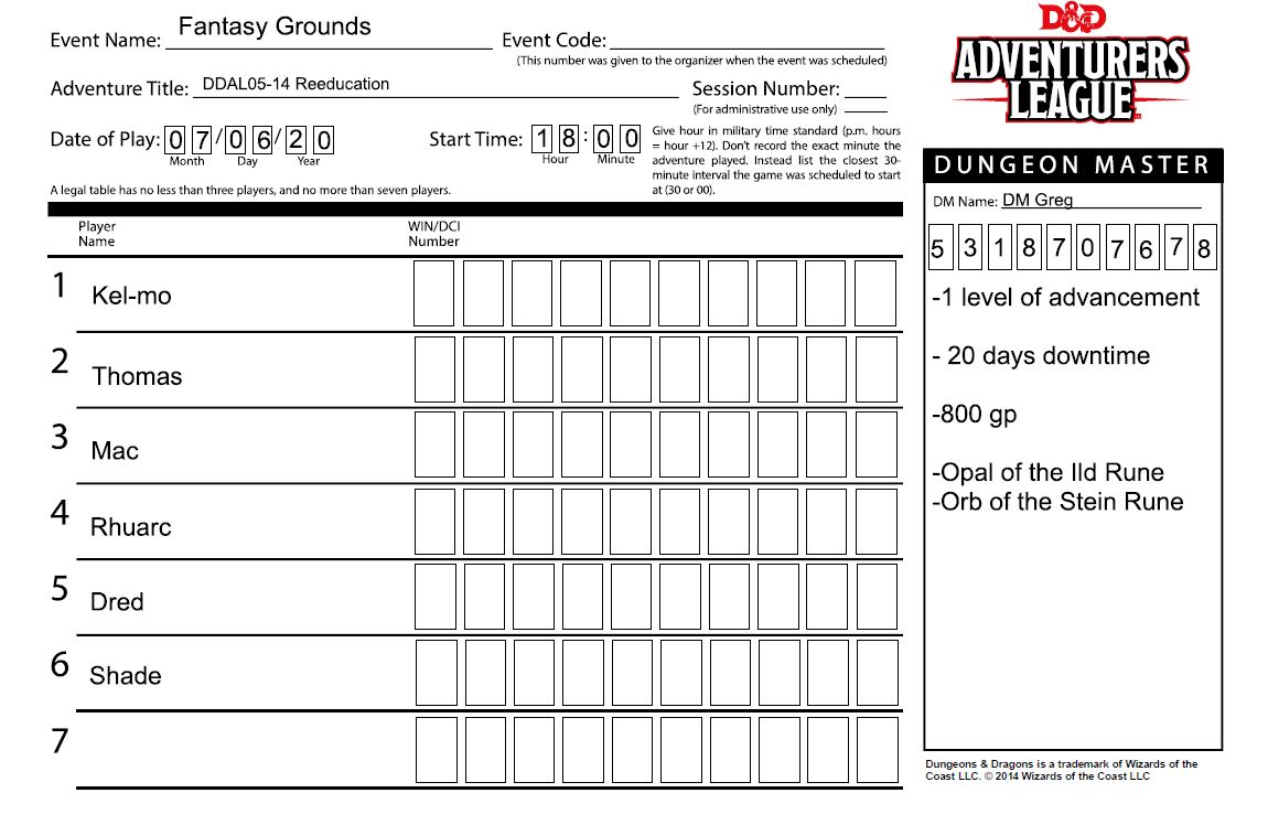 Adventurers League DDAL05-14 Reeducation on Fantasy Grounds.
